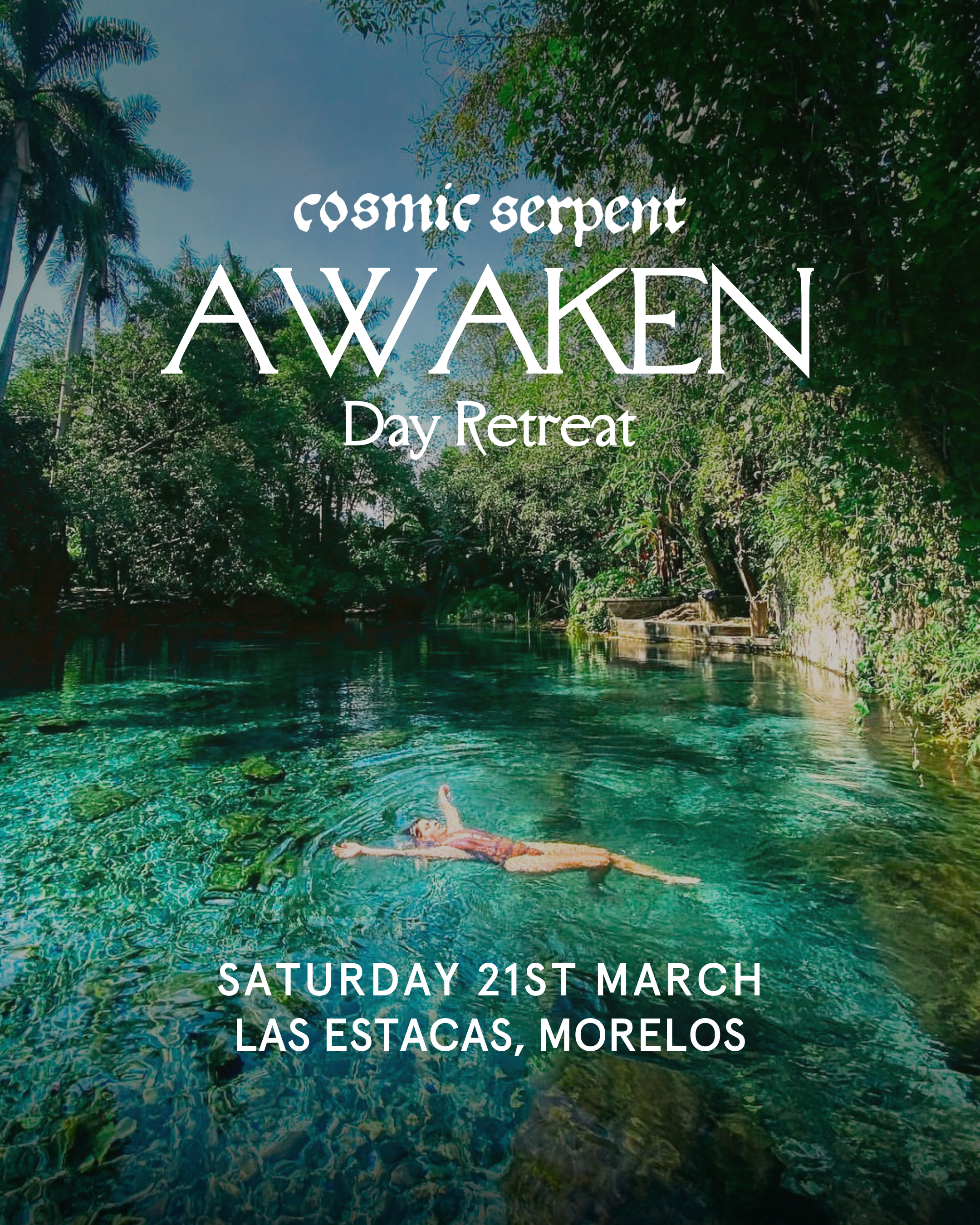 Join Cosmic Serpent co-founders, Taylor & Georgia Hunter, for a day retreat at Las Estacas, a pristine natural park nestled around a crystal clear, spring water river, just 2 hours from Mexico City.