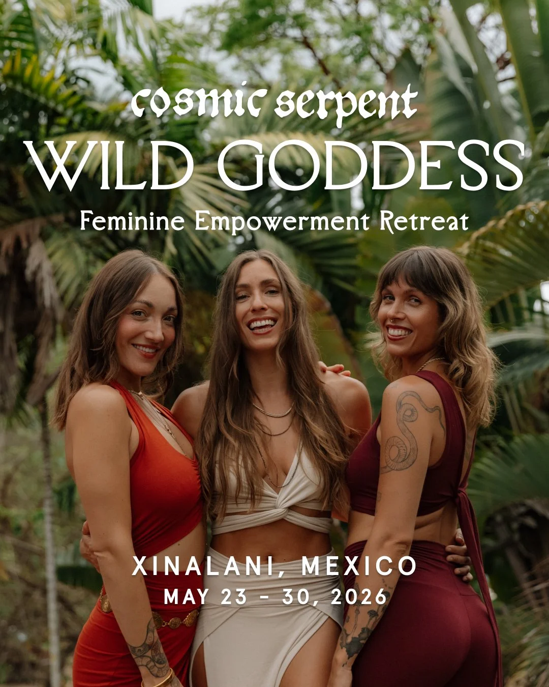 This was my second Cosmic Serpent retreat and they only went and did it again! My first Cosmic Serpent retreat in 2022 was when I was in the middle of a huge life transition and needed to figure a lot out and it was the catalyst to a huge life shift. Two years later and i’m in such an amazing place and am thriving in life, so I simply wanted to fill my own cup on this retreat. But the deeper work was there waiting for me, which I wasn’t even aware was happening until a few days in! It amazes me how the girls do it. They create such transformational spaces for people to go on their own journey of self discovery and inner work. They guide, but let us do it on our own too. I feel like I have a whole new outlook on what it is to be a woman. The women they brought together showcased just how magnificent, unique and vibrant a woman in her power can be. And how women from all corners of the world can connect and come together in the most beautifully supportive and loving way. Every practice, workshop and sharing circle felt like it reached into my soul, giving me a gentle nudge to be brave, explore and unleash my magnificent wild goddess. I could write a whole book about what I love about Cosmic Serpent retreats. But to sum it up; Taylor, Georgia and Rachel are not only hugely talented, inspirational women who I will forever be grateful to have met and shared space with, but now they feel like sisters for life. Thank you for helping me see my depth, diversity and potential, and having fun with me along the journey. Love you all endlessly.